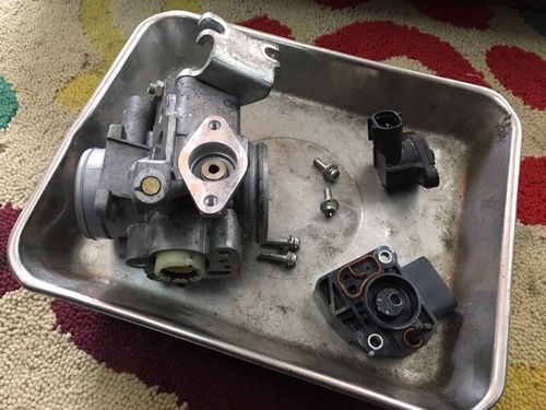 Hさんのセロー250 カスタム&修理です! 写真はスロットルボディーの清掃です☆ 意外とゴミ等が溜まって悪さするんですよ<(`^´)>
