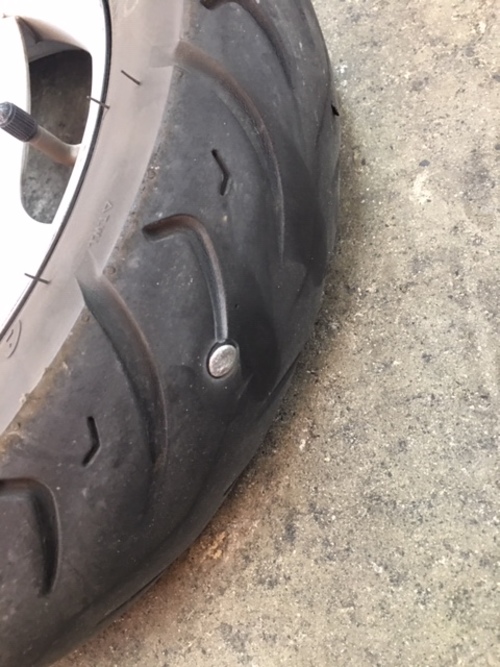 ブスっと一発 踏んでます(^_^;) スリップラインも出ているのでタイヤ交換です!!