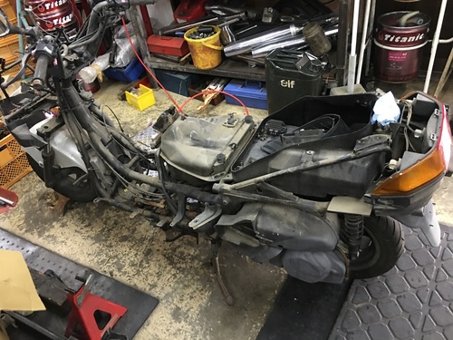 先輩からのご依頼で不動車のマジェスティSV 乗れる状態までするのにいくらかかるのかの見積もりです!! なかなか傷んでるので見積もりも大変です( ;∀;)