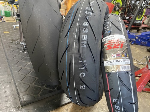 MT-09の前後タイヤ交換です☆ ピレリからBSになりまーす!! かなり乗り味が変わるのでインプレしてもらいます(*^^)v